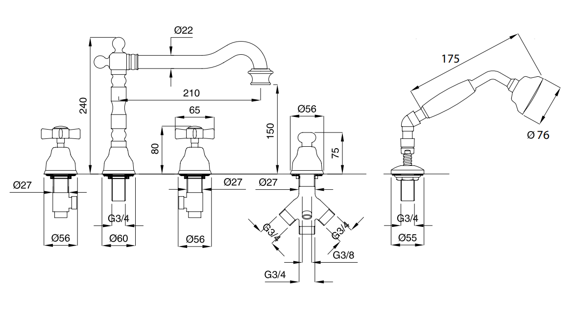 Смеситель на борт ванны на 5 отв. Migliore Princeton ML.PRN-880 Золото информация: