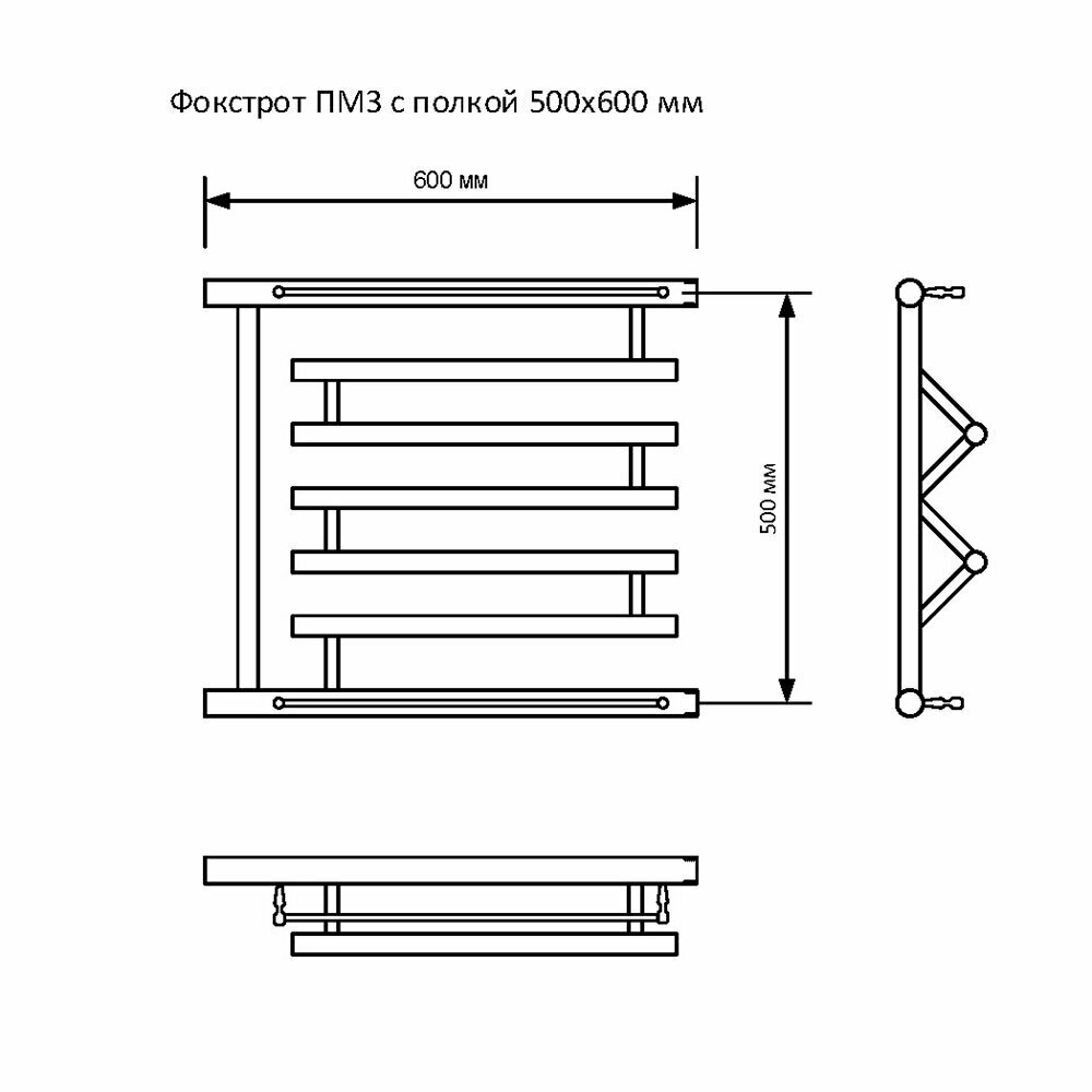 Полотенцесушитель водяной MyFrea 500х600 мм фокстрот с полкой хром информация: