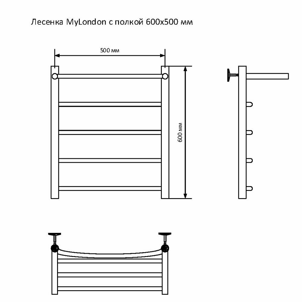 Полотенцесушитель водяной MyFrea MyLondon 600х500 мм лесенка с полкой хром информация: