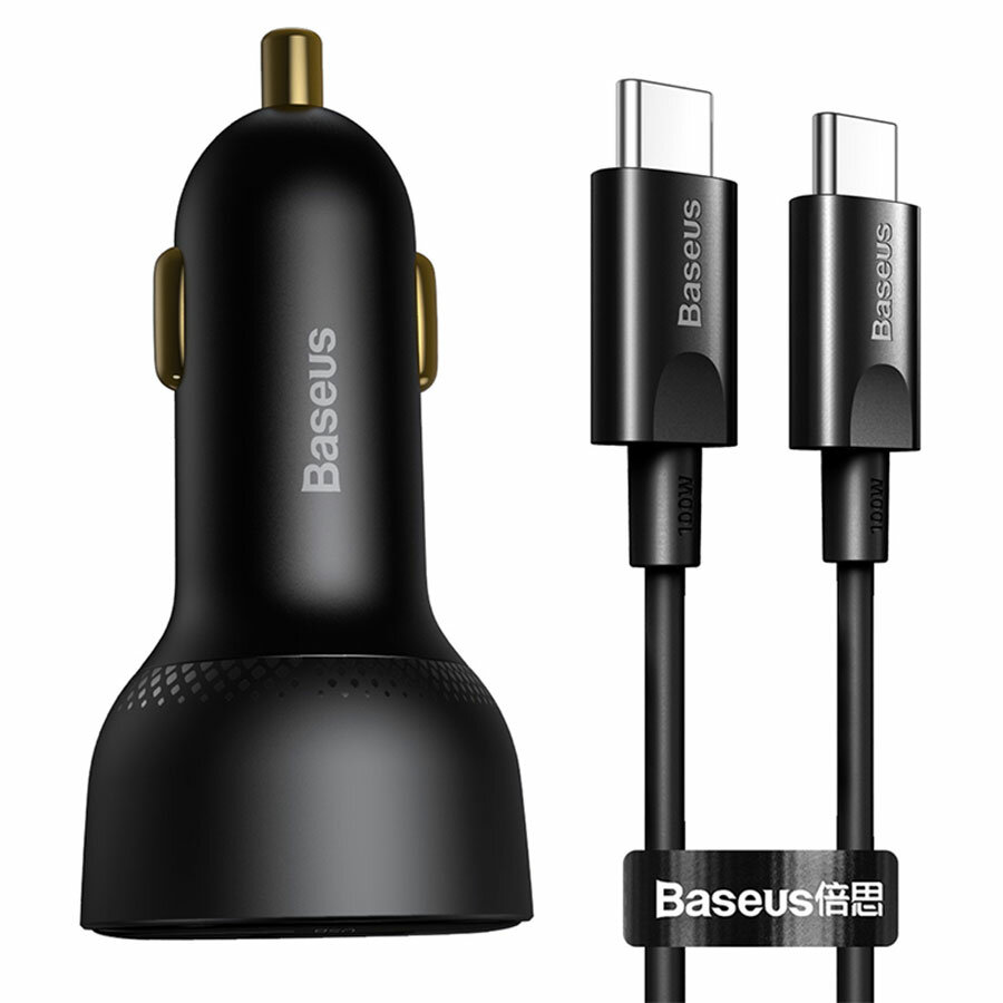 10 цен на Автомобильное зарядное устройство BASEUS Superme Digital Display, 1xUSB + 1xUSB-C с Кабелем Type-C - Type-C, 5A, 95W, черный