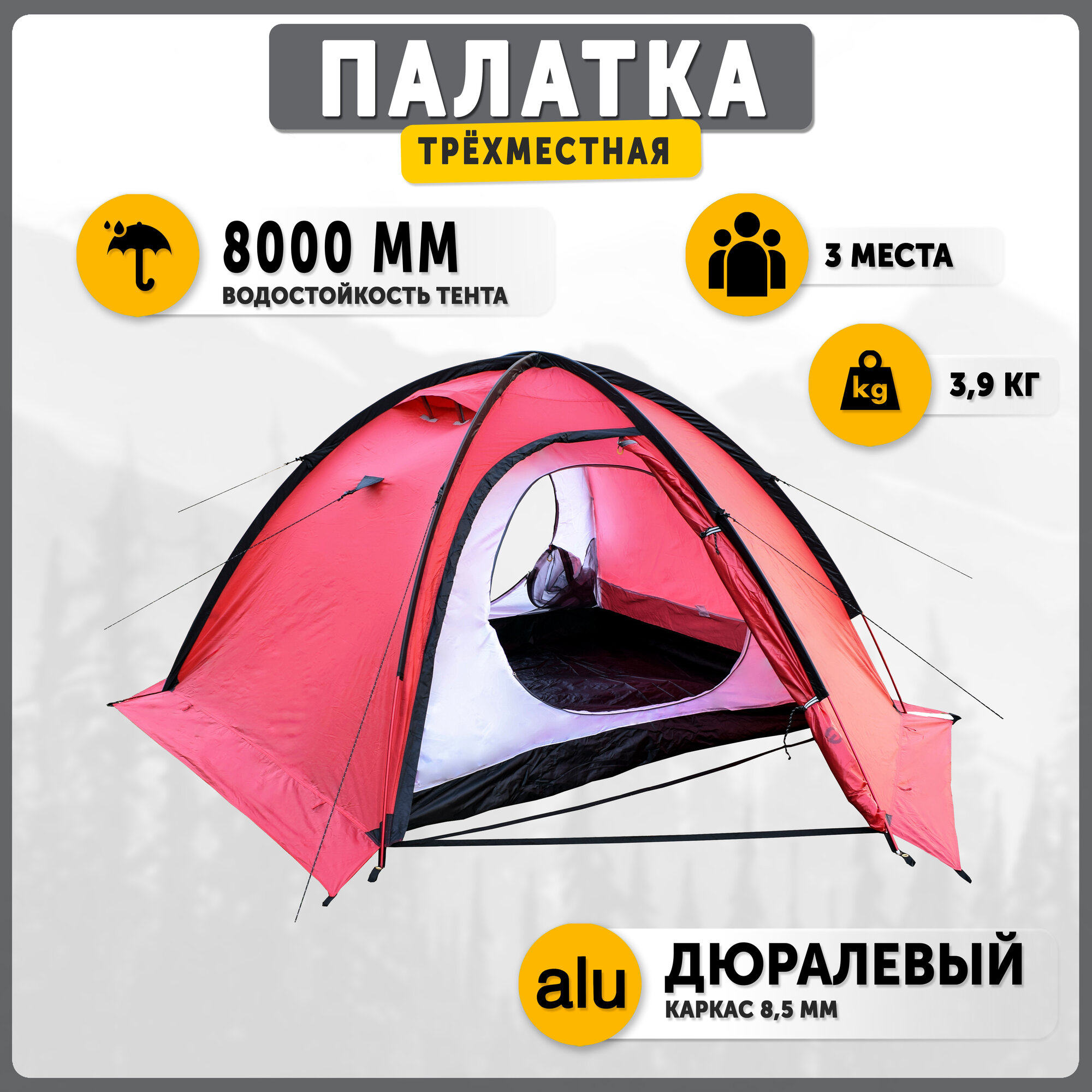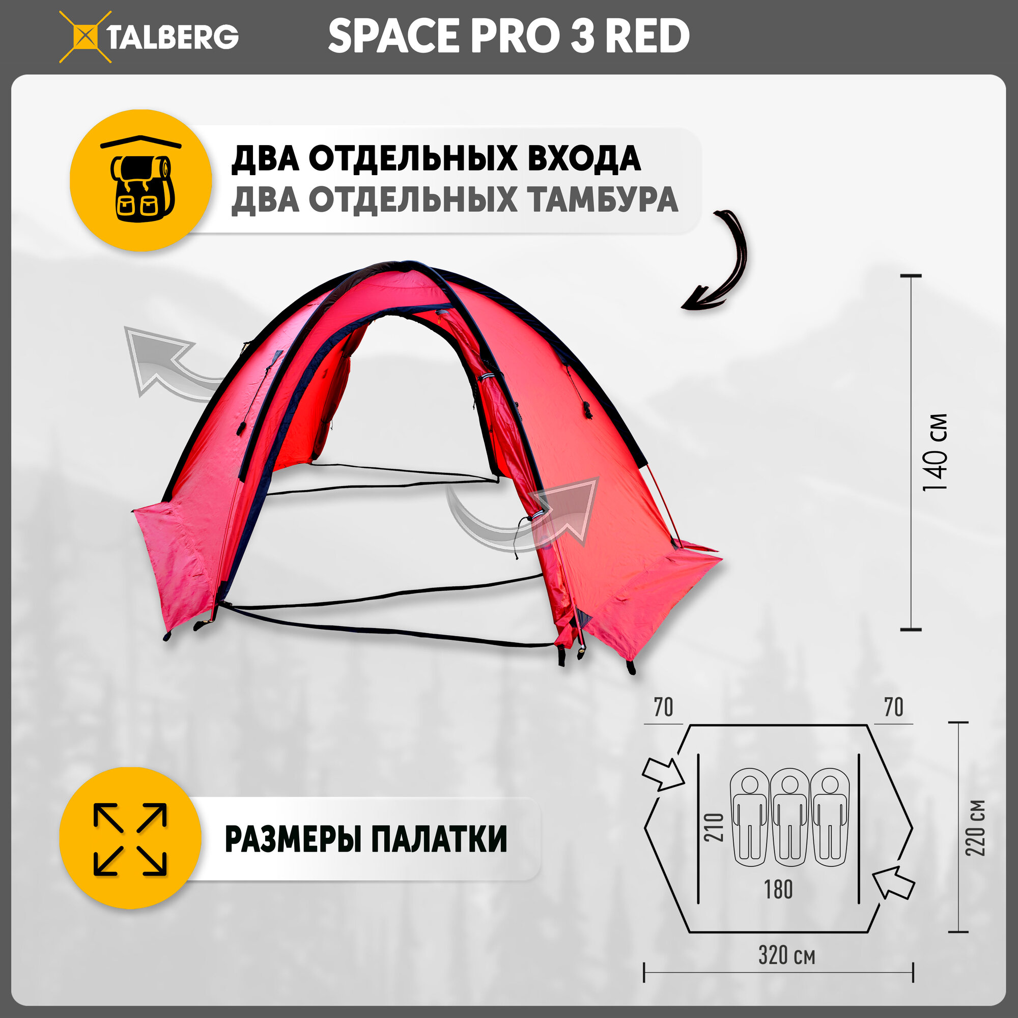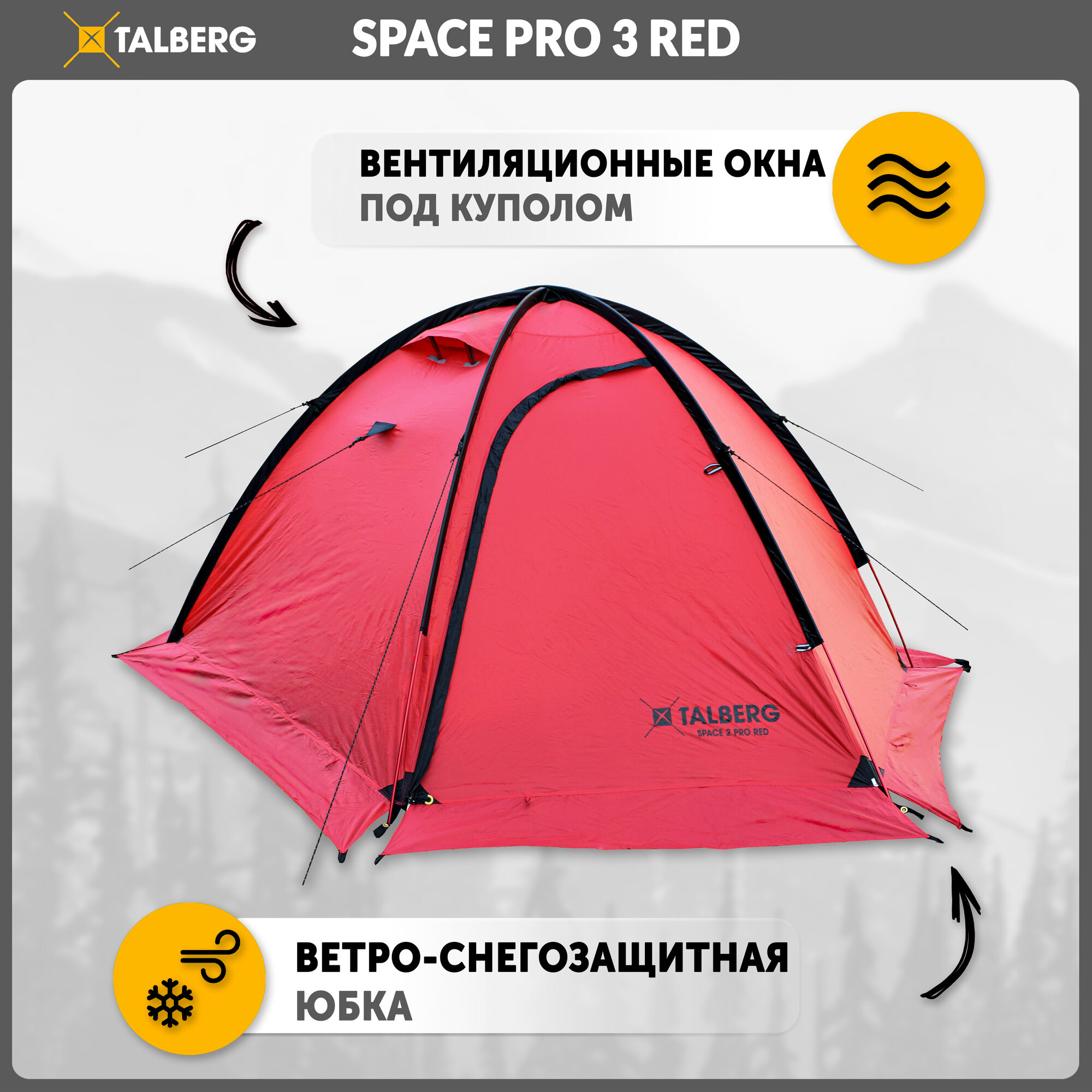 Палатка туристическая экстремальная Talberg SPACE PRO 3 RED , красный информация: