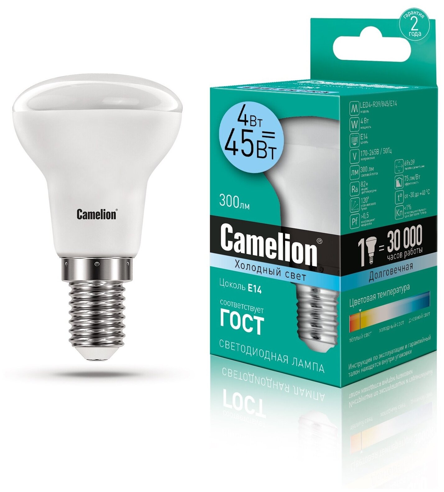 10 цен на Camelion Led4-R39/845/Е14 (Эл.лампа Светодиодная) 4Вт, 220В Camelion арт. LED4R39845Е14