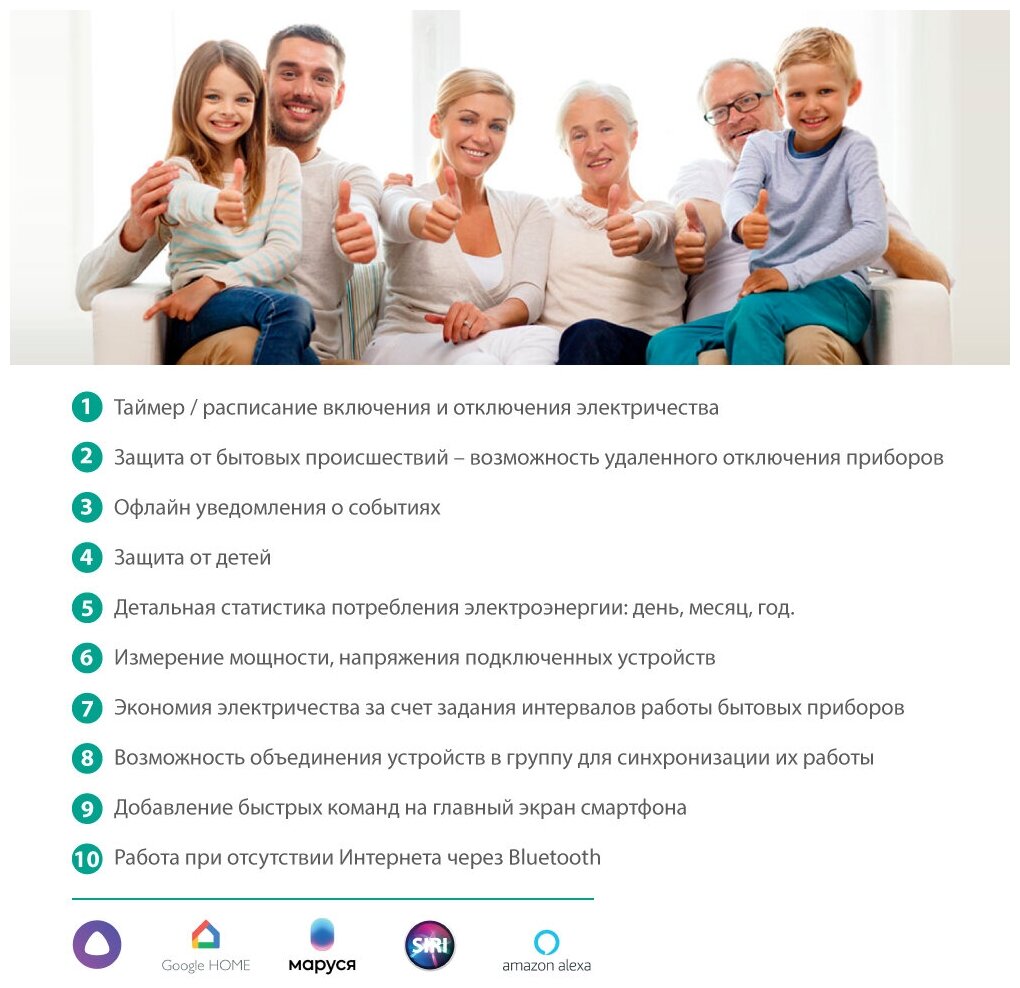 | Дополнительная информация | особенности: выключатель, таймер, счетчик электроэнергии, защита от детей; голосовое управление: Siri, Алиса, Google, Маруся, Alexa; управление через приложение на смартфоне: Camelion Smart Home |