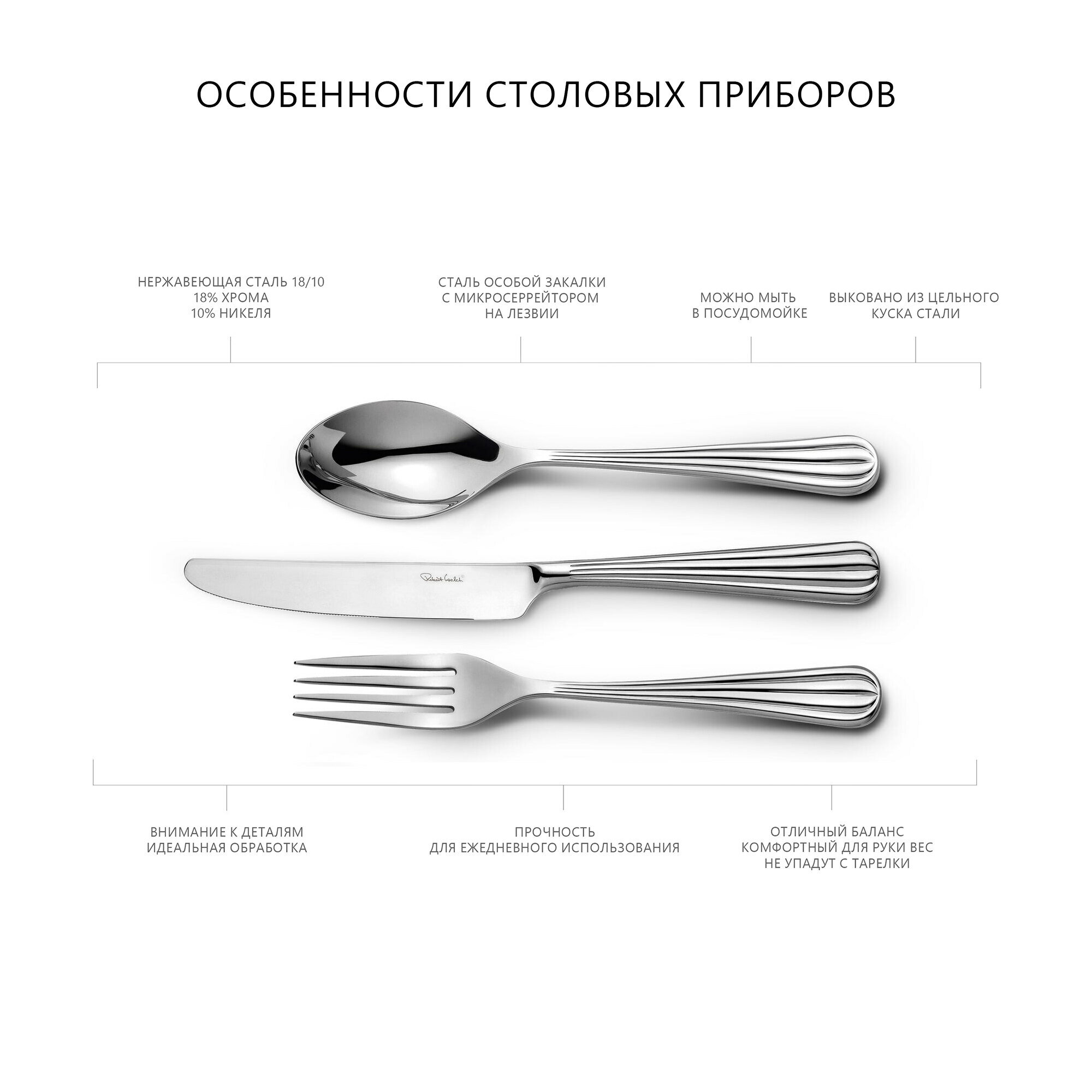 10 цен на Набор столовых приборов Robert Welch Palm Bright на 6 персон, 24 предмета, нержавеющая сталь, PALBR1099V/24