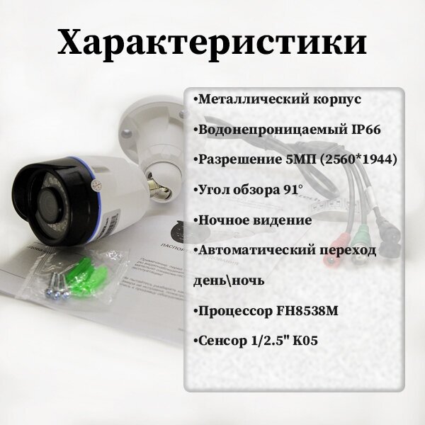 IP камера XVI VI5302ZP-SD (2.8-12мм ручная), 5Мп, PoE, вход для микрофона, SD слот, ИК подсветка, антивандальная