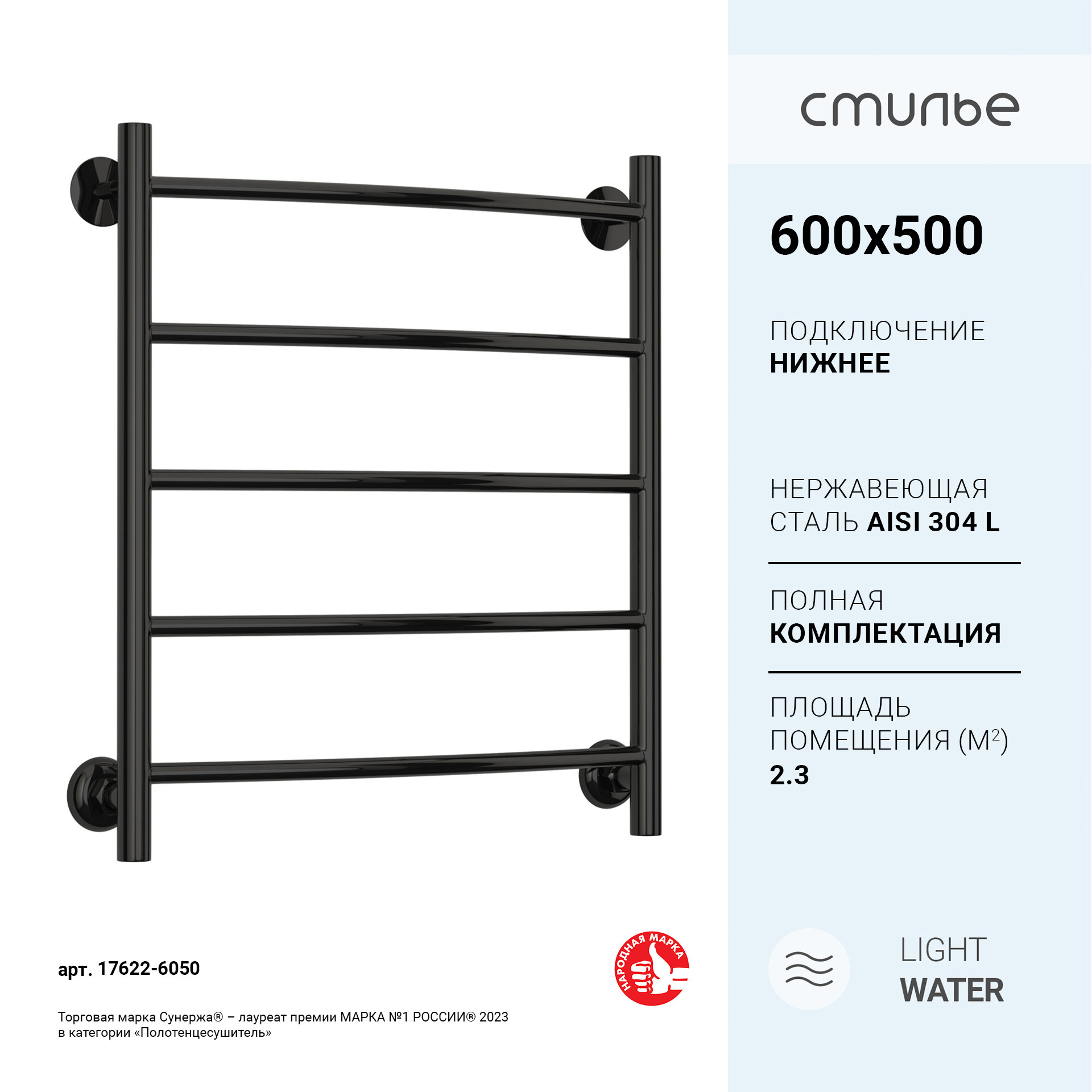 Полотенцесушитель водяной Стилье Версия-Н2 600х500 (5) Г 18 черный 17622-6050 информация: