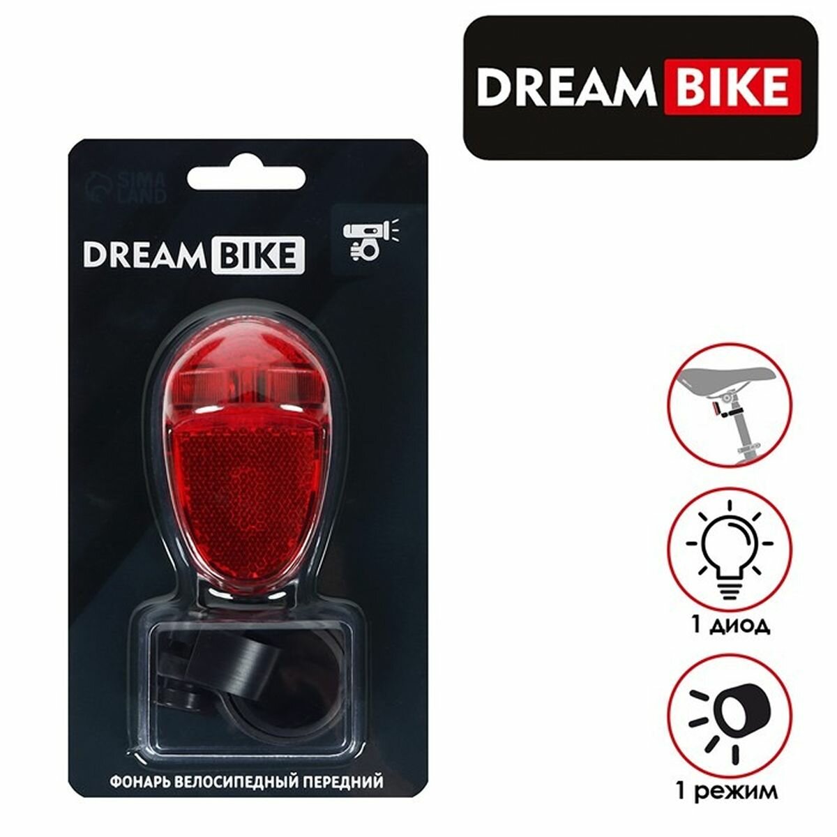 Фонарь велосипедный Dream Bike, JY-399T-1, 1 диод, 1 режим, 1 шт