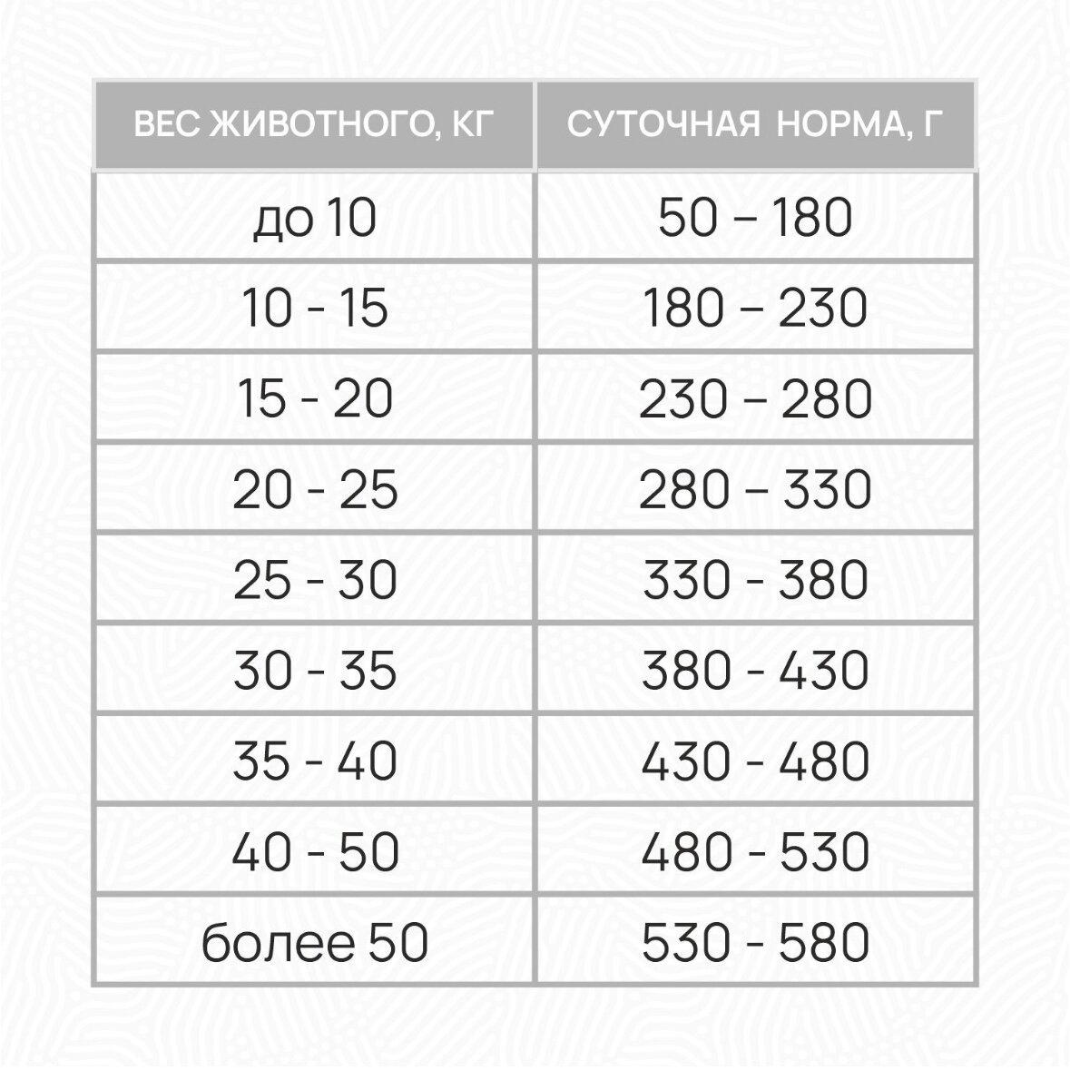 | Возраст животного | взрослые (1-6 лет) |