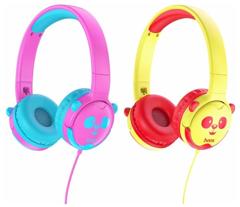 Hoco Наушники Hoco W31 "Панда", проводные, накладные, 85 дБ, Jack 3.5 мм, 1.2 м, желто-красные