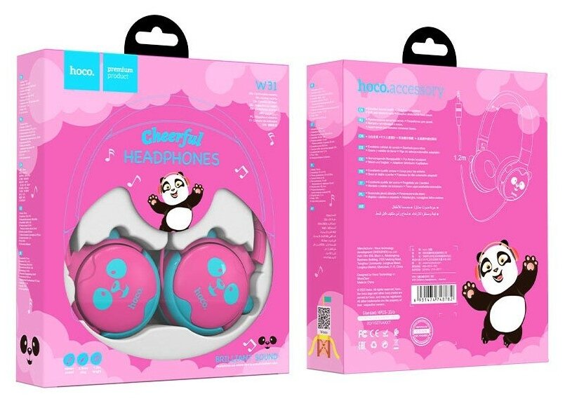 Внешние наушники HOCO W31 Childrens headphones розовые (панда)