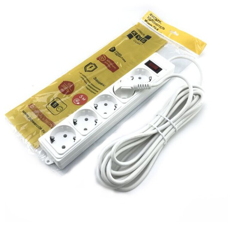 Сетевой фильтр Power Cube PG-B 5m 5 розеток (белый) информация: