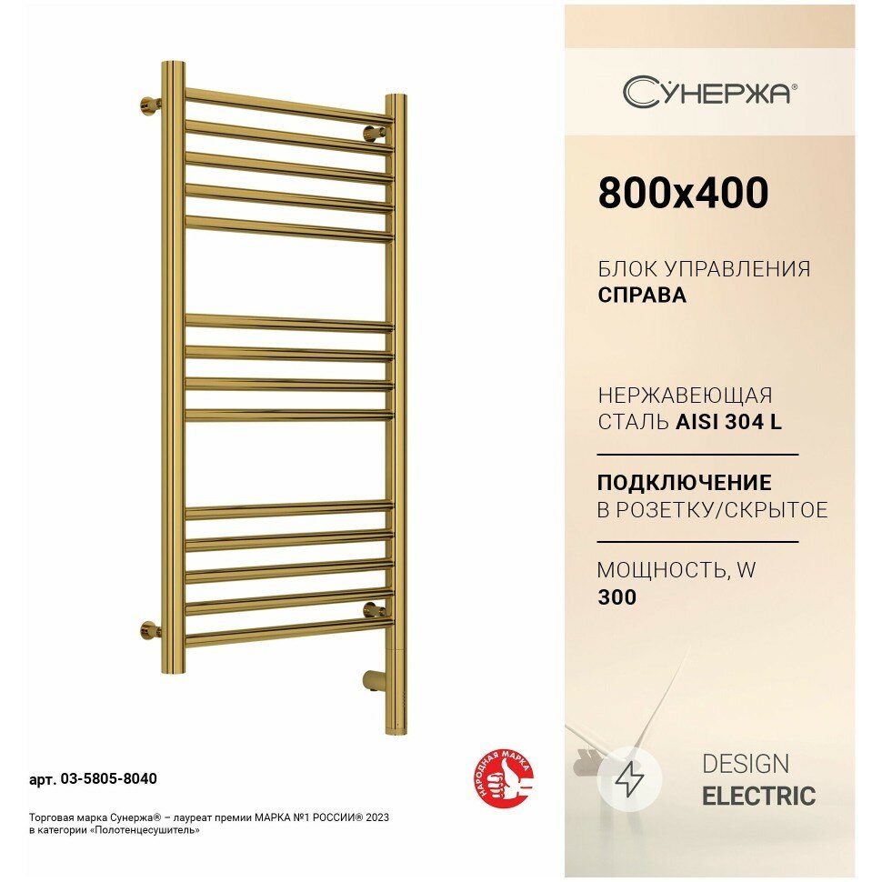 Электрический полотенцесушитель Сунержа Богема 3.0 прямая 800х400 МЭМ правый золото информация: