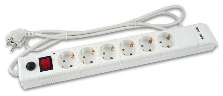 Сетевой фильтр Buro BU-SP5_USB_2A-W, 6 розеток, 5 м, с/з, 10А / 2200 Вт белый