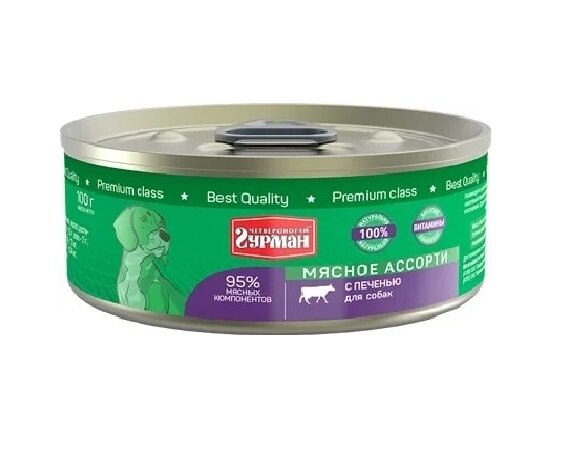 Четвероногий Гурман консервы для собак Мясное ассорти с Печенью 100г (24 штуки) информация: