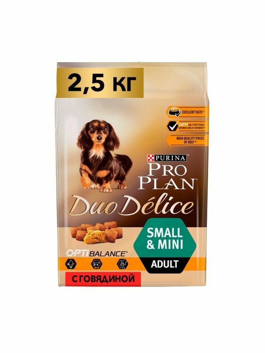 Сухой корм Pro Plan Duo Delice для собак мелких и миниатюрных пород с говядиной 2.5кг информация: