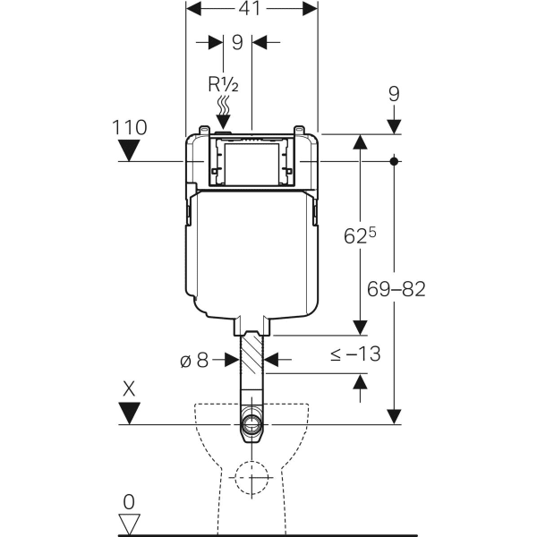 Смывной бачок скрытого монтажа Geberit 109.791.00.1 Sigma-8 (16) Бачок смывной для скрытого монтажа, глубина 8 см