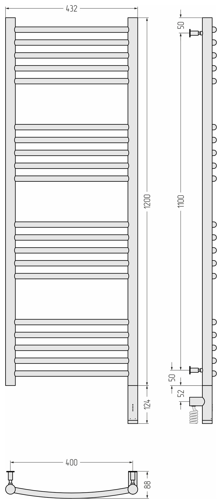 Электрический полотенцесушитель Сунержа Богема 3.0 выгнутая 1200х400 птэн (Без покрытия)