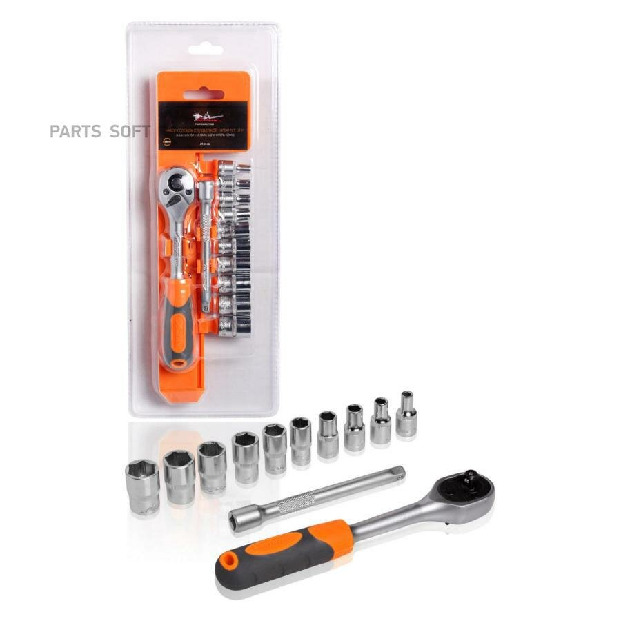 10 цен на Набор головок с трещоткой 1/4 DR 72Т 12пр, (4,5,6,7,8,9,10,11,12,13мм, удлинитель 100мм) (AT-12-26)