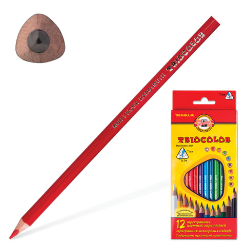 Карандаши цветные KOH-I-NOOR "Triocolor", 12 цветов, трехгранные, грифель 3,2 мм (3132012004KSRU)