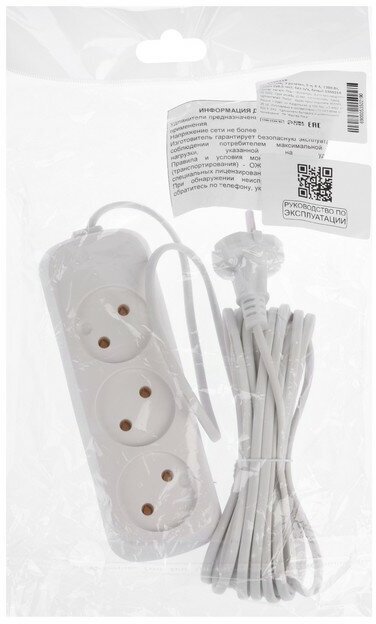 Отзывы на Удлинитель 3 розетки, 5 м, 6 А, 1300 Вт, ШВВП 2х0.5 мм2, без з/к, белый 5350219