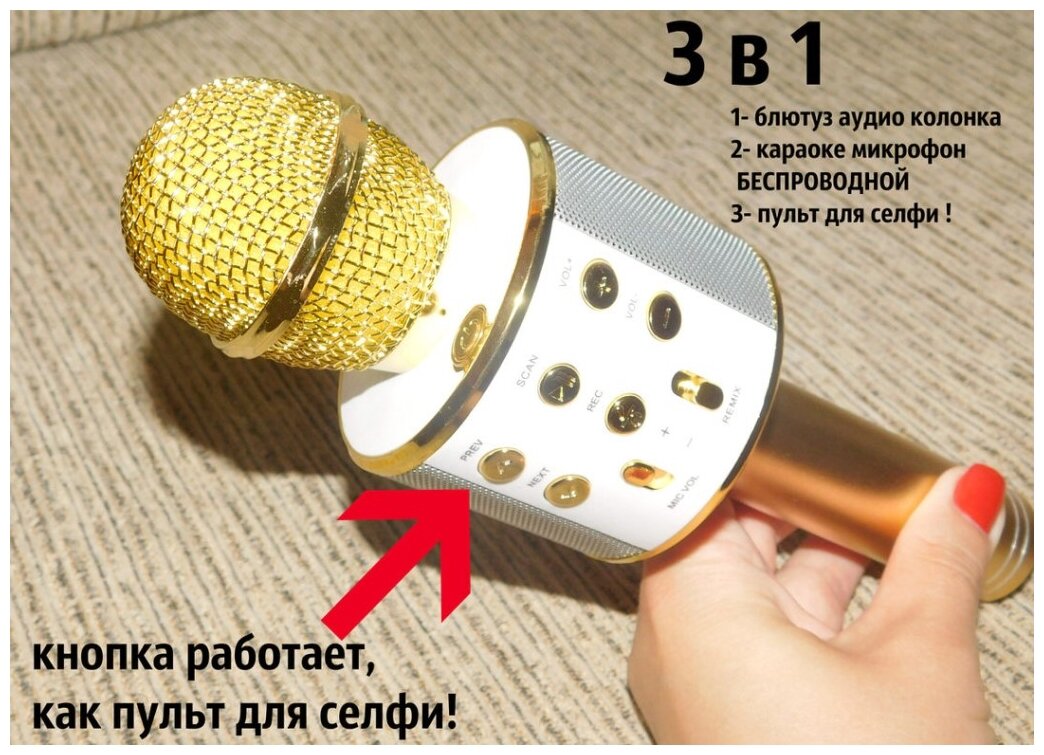 Караоке Микрофон Блютуз Magic Acoustic Superstar/Bluetooth микрофон для Девочек Мальчиков Взрослых/Караоке 3-в-1/MA3001GD Superstar, золотой