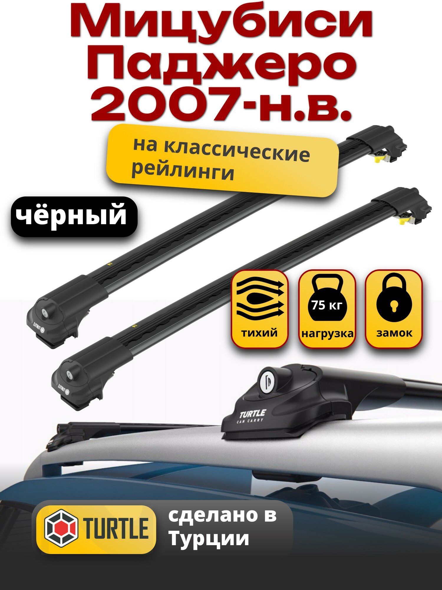 10 цен на Багажник на крышу Мицубиси Паджеро 2007-2024 на рейлинги, черный, Turtle Air-1