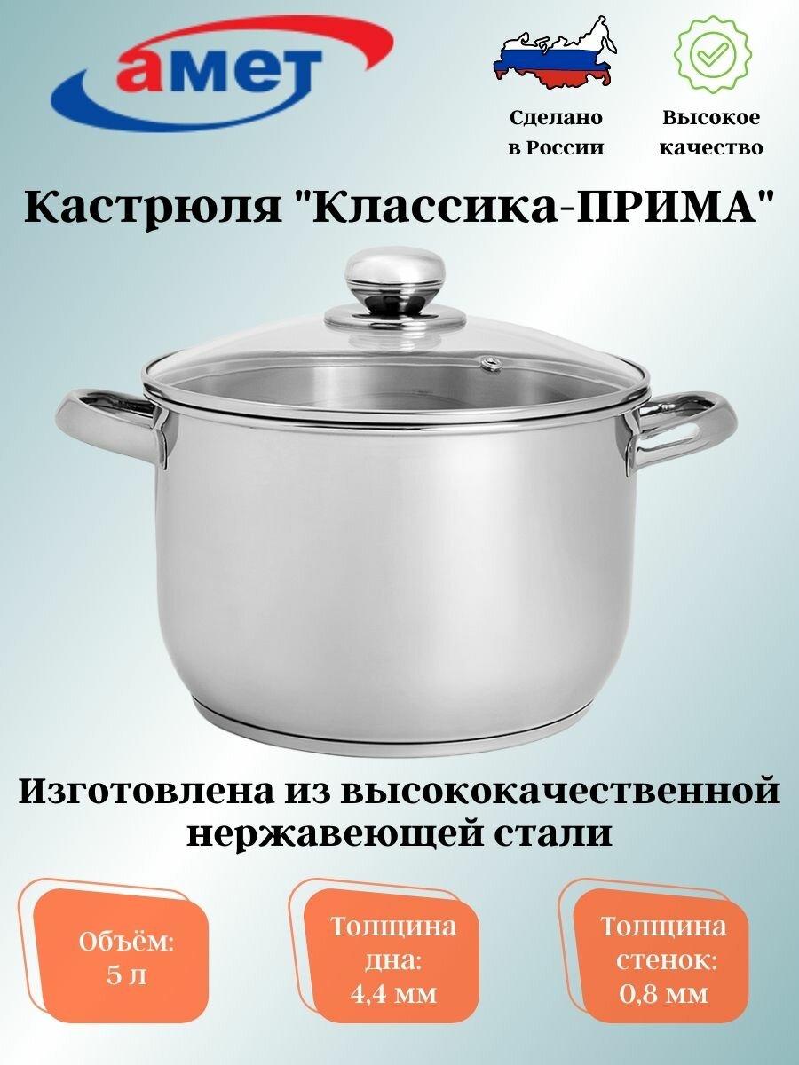 Кастрюля 5 л амет, Классика-Прима, 1С-806, нерж.сталь, зеркальная полировка
