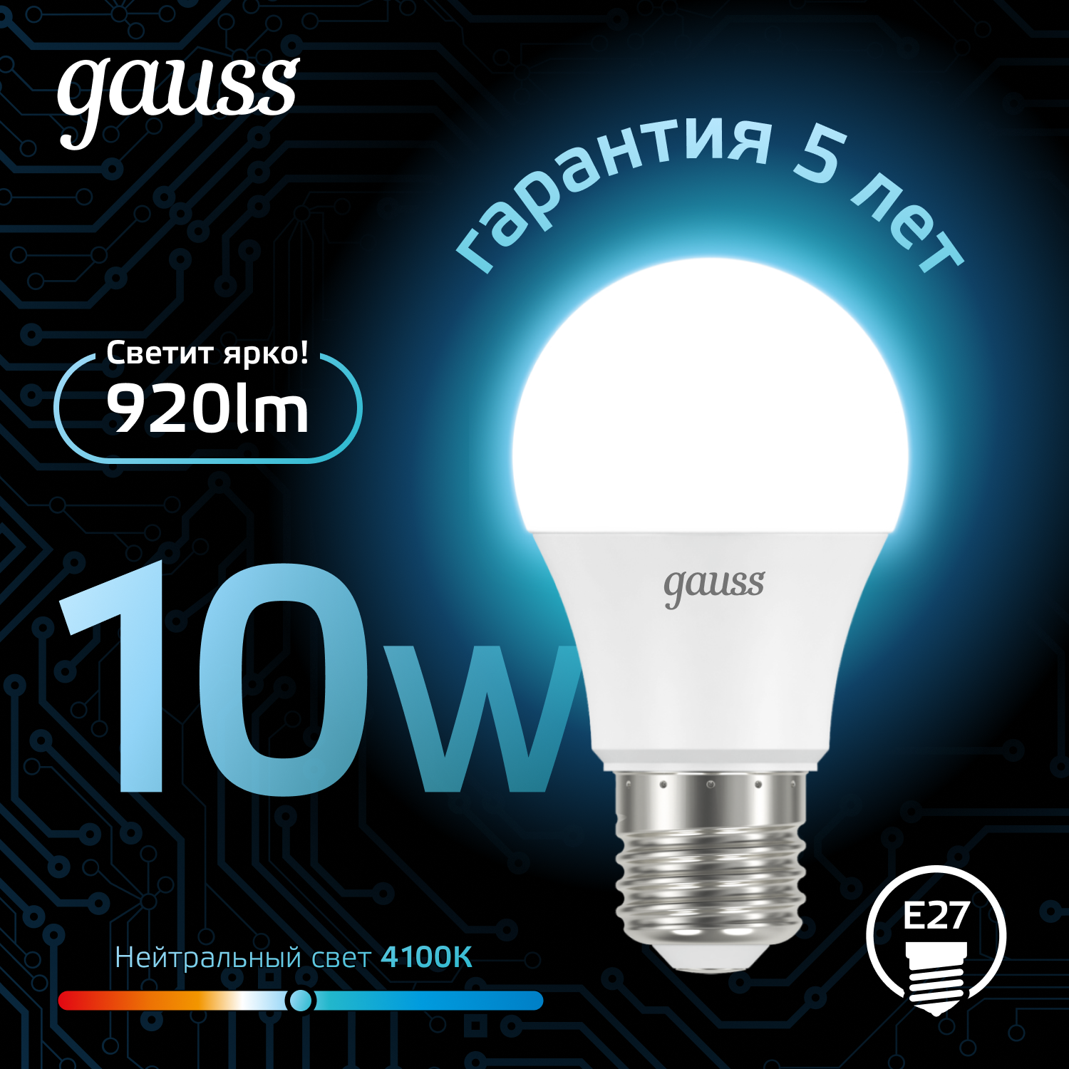 Набор из 10 штук Лампа Gauss A60 10W 920lm 4100K E27 LED 1/10/50 3 766 ₽