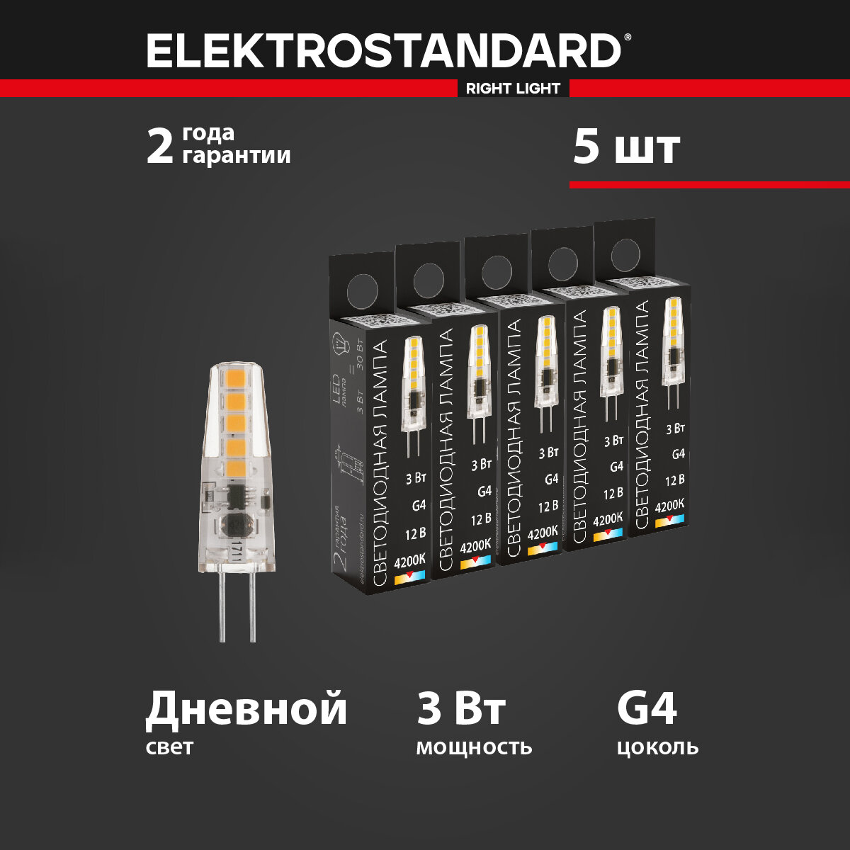 10 цен на Лампа светодиодная G4 LED 360° Elektrostandard BLG412, 3 Вт, 12 В, 4200 K - комплект 5 шт.