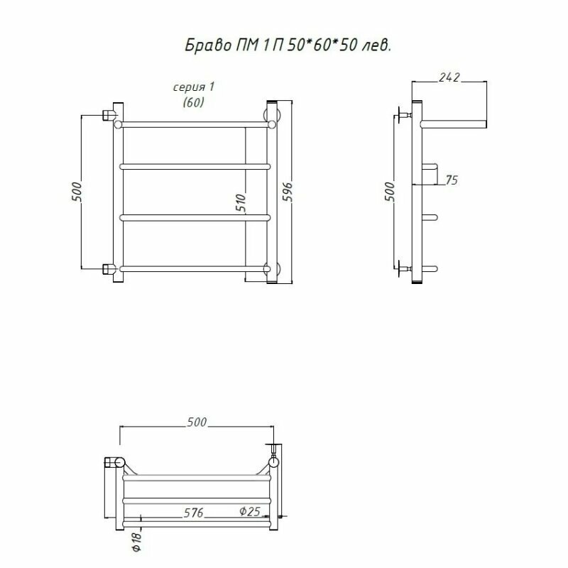 Полотенцесушитель Браво ПМ 1 П 50*60*50 лев
