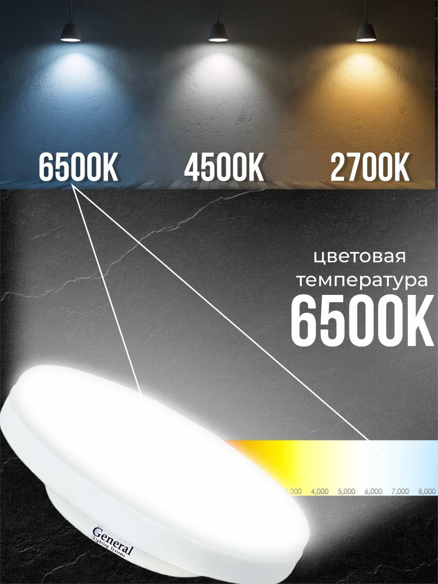 10 шт. Светодиодная лампочка General Шайба 12Вт GX53 6500K 170-260В информация: