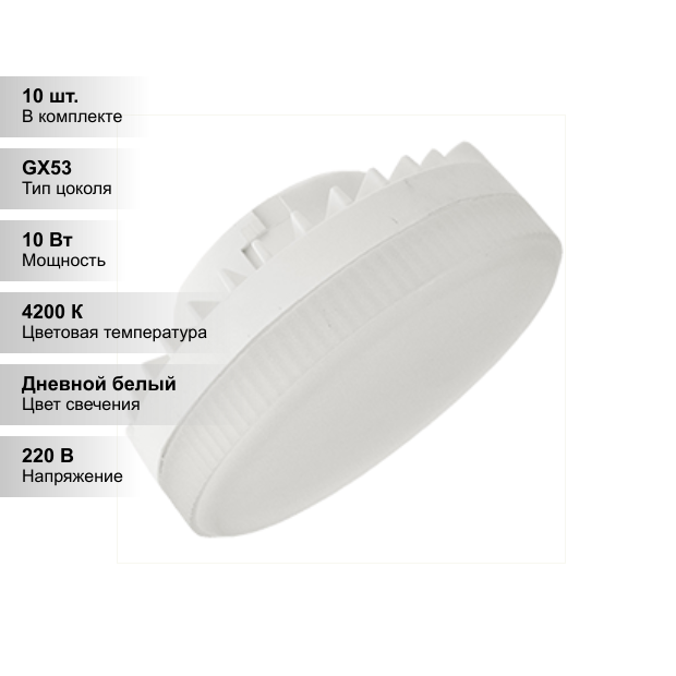 Светодиодная лампа 10,0W цоколь GX53 4200K T5QV10ELC 10шт. 905 ₽
