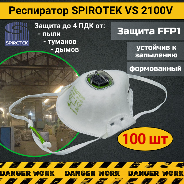 Респиратор - Маска SPIROTEK VS 2100V c клапаном FFP1, 100 шт. информация: