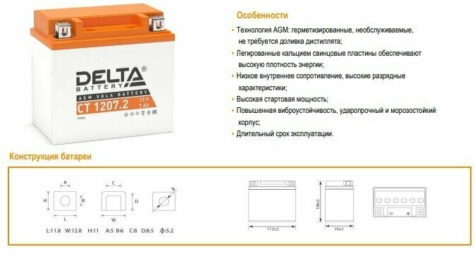0 отзывов, средняя оценка 0. Чтобы купить «Аккумулятор DELTA CT1207.2 (YTZ7S) для скутера, мотоцикла, квадроцикла DELTA-CT1207.2» по лучшей цене мы сканируем авито, алиэкспресс, маркет, озон, савеловский, плеер, горбушку, беру, официальные сайты и находим минимальную. Администрация не несет ответсвенность актуальность цен на Аккумулятор DELTA CT1207.2 (YTZ7S) для скутера, мотоцикла, квадроцикла DELTA-CT1207.2, более подробно узнавайте на сайте магазина.