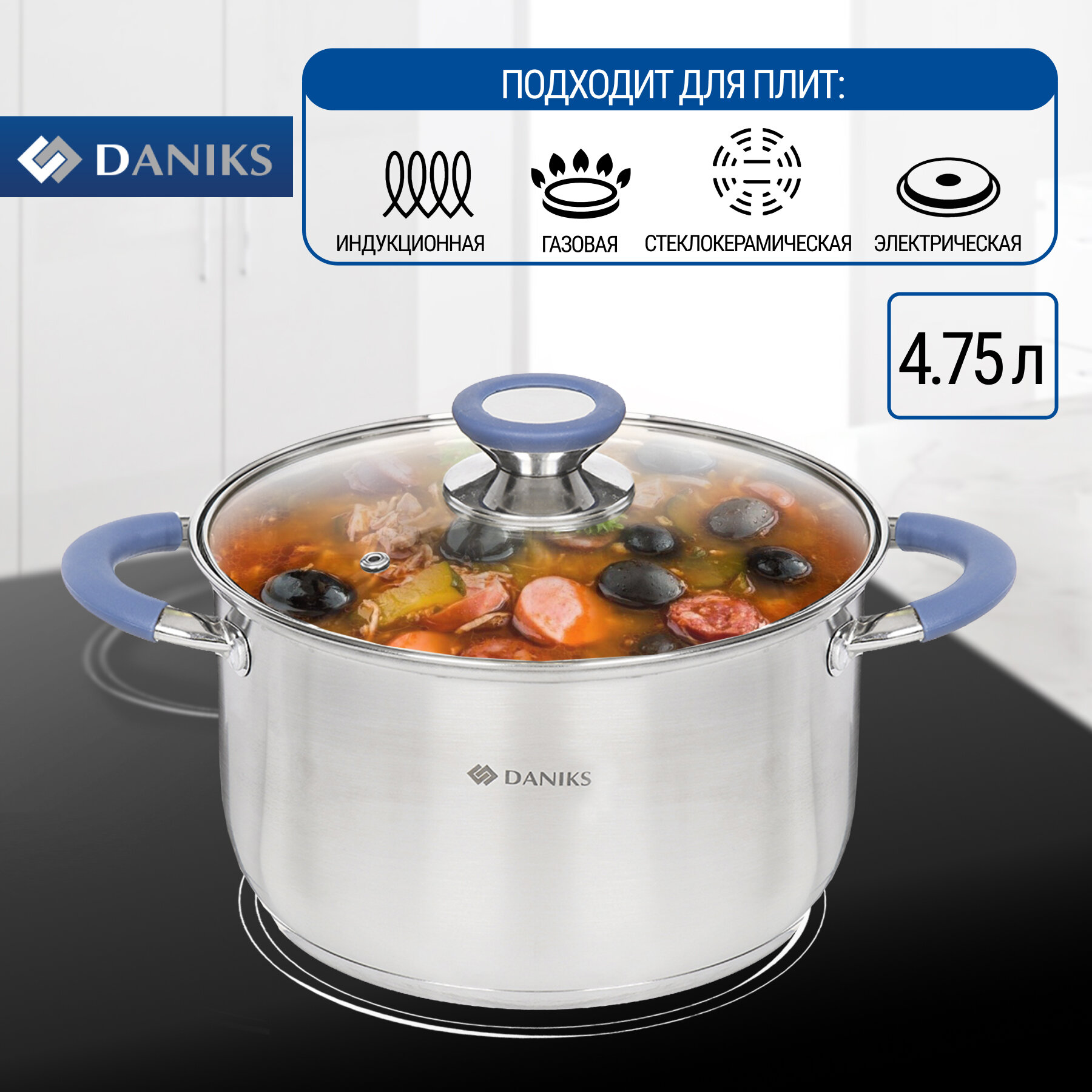 Кастрюля нержавеющая сталь Daniks 4,75л. индукция Сиена информация: