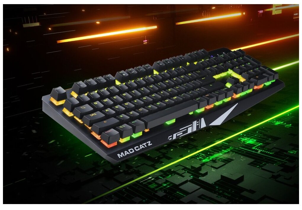Игровая беспроводная клавиатура Mad Catz S.T.R.I.K.E. 11 US [без русской раскладки] чёрная (2.4 ГГц, Bluetooth, USB Type-C, Mad Catz RED Switch, 100 кл., RGB подсветка)