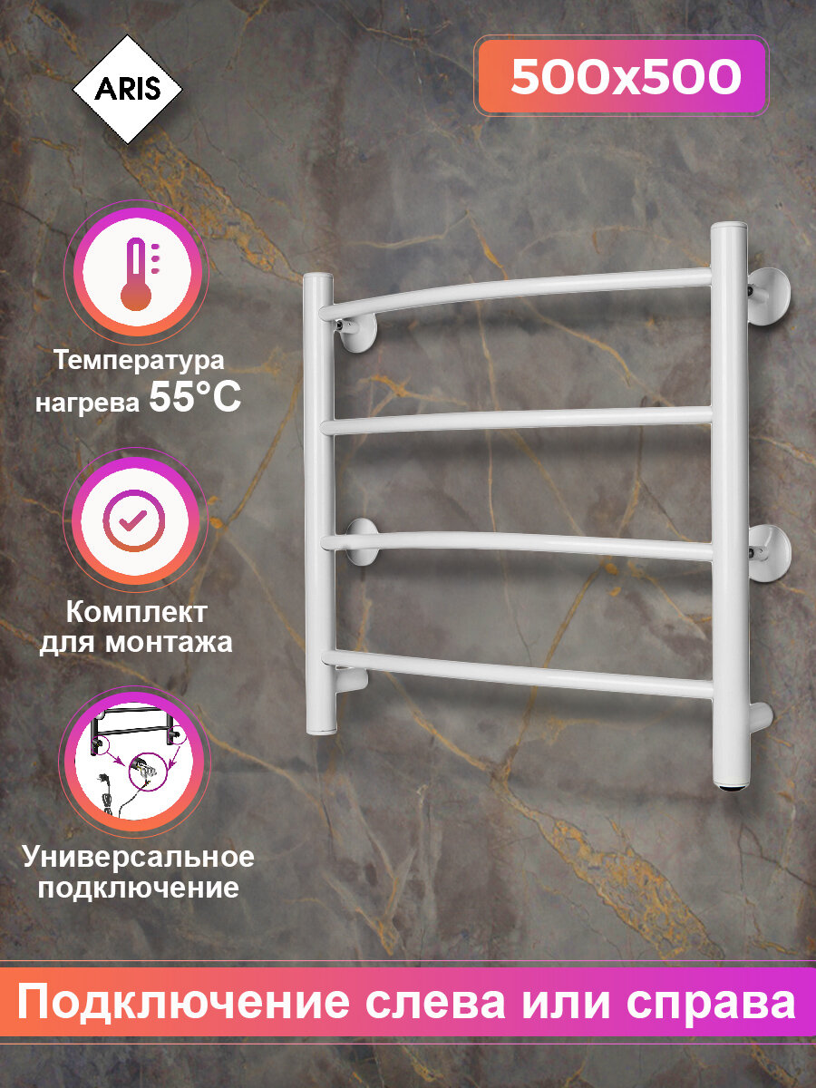 Aris Электрический полотенцесушитель ребро 500x500 белый 4 перекладин ПСК-10-51б информация: