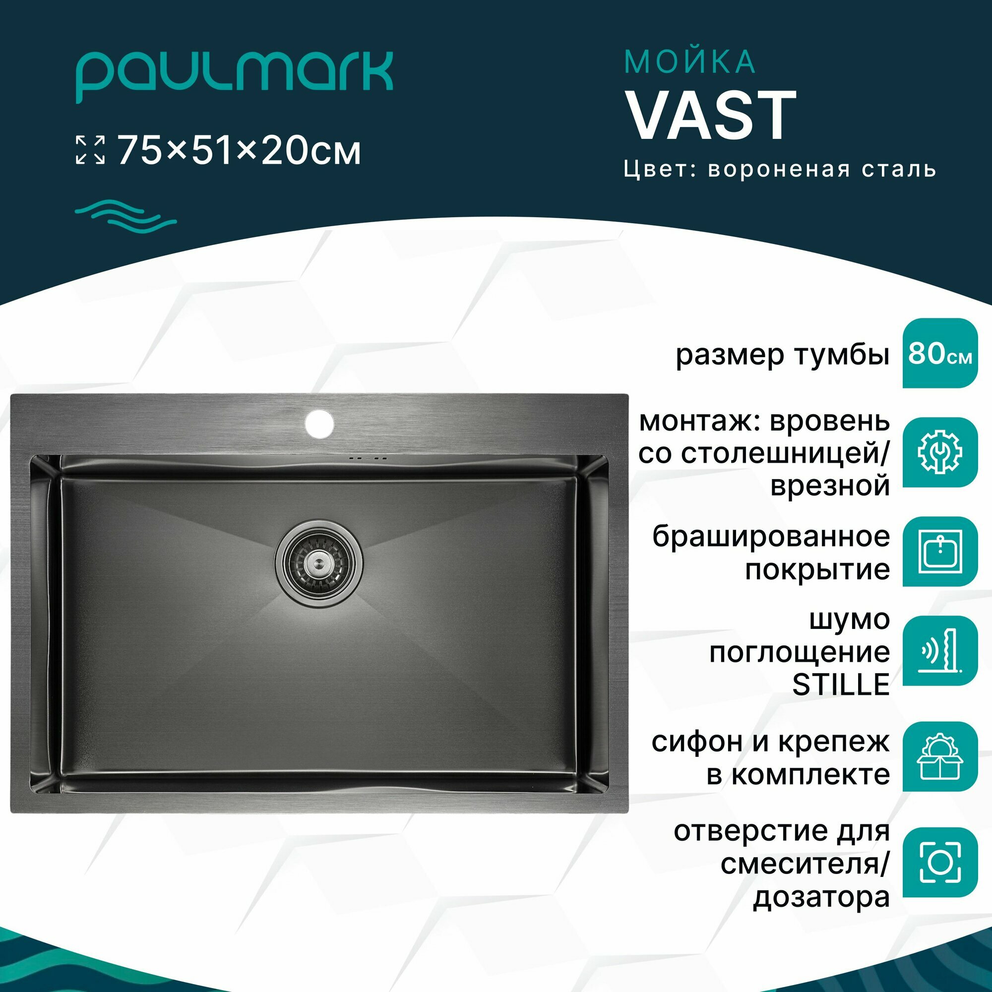 Мойка нерж. сталь VAST, PM217551-GM, вороненая сталь, 750х510мм, Paulmark