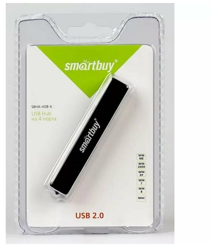 USB HUB, хаб на 4 порта Smartbuy USB 2.0 (SBHA-408-K) черный