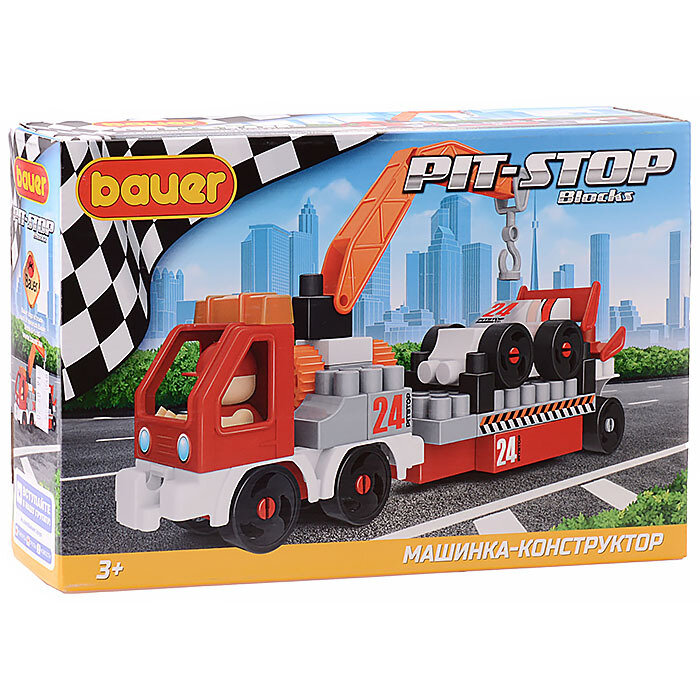 Детский развивающий конструктор Bauer Набор с эвакуатором и гоночной машиной в коробке "Pit Stop" 3+