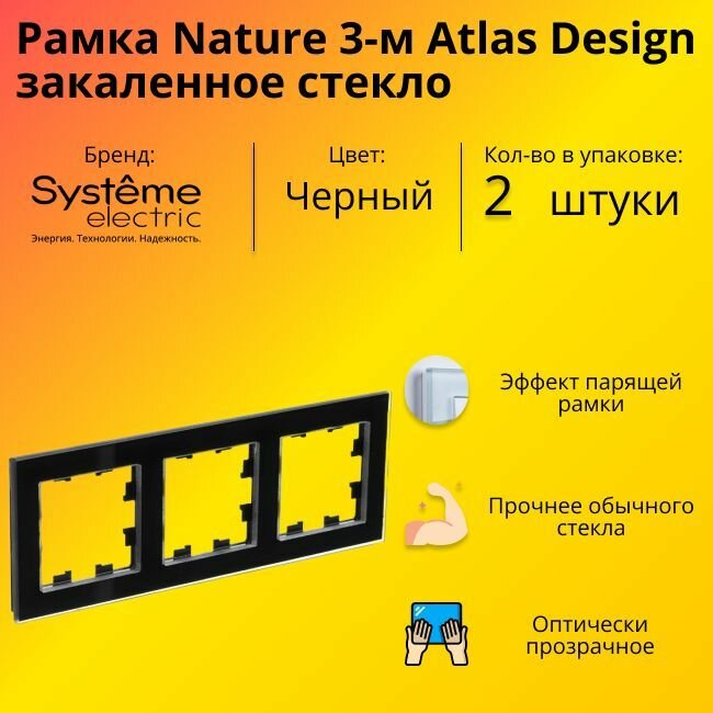 Рамка тройная для розеток и выключателей Schneider Electric (Systeme Electric) Atlas Design Nature закаленное стекло черный глянец ATN321003 - 2 шт. информация: