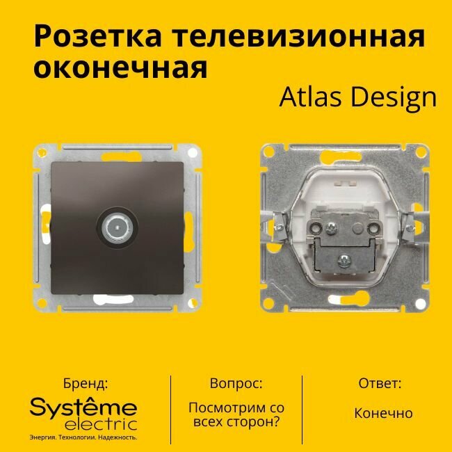 Розетка телевизионная оконечная Schneider Electric (Systeme Electric) Atlas Design 1дБ, Мокко ATN000691 - 10 шт. информация: