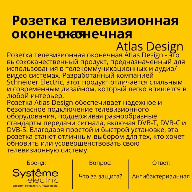 Schneider Electric AtlasDesign TV Розетка оконечная 1DB, Грифель Арт. ATN000791 665 ₽