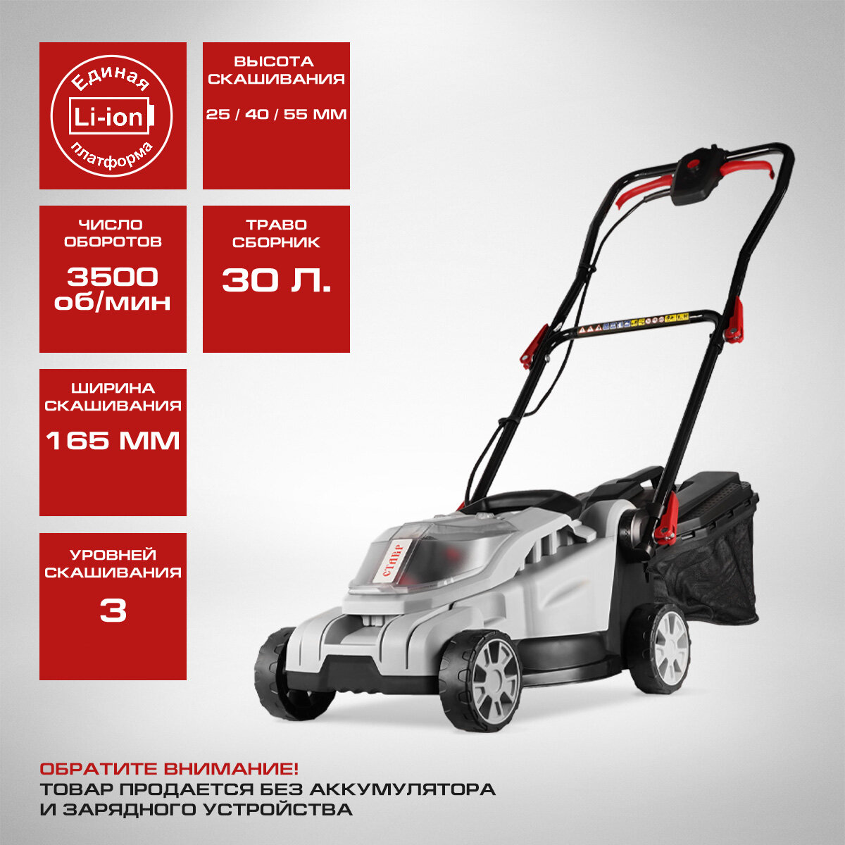Стервинс газонокосилка акуумуляторная 330мм (20В) АКБ и ЗУ не входит в комплект / STERWINS газонокосилка акуумуляторная 330мм (20В) АКБ и ЗУ не входит
