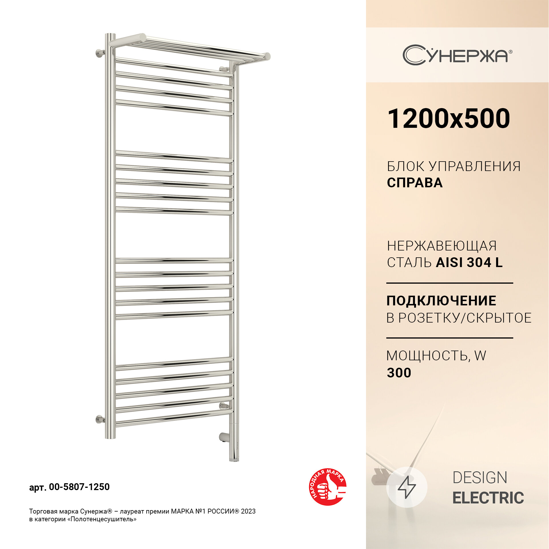 Электрический полотенцесушитель Сунержа Богема с полкой 3.0 1200х500 МЭМ правый без покрытия информация: