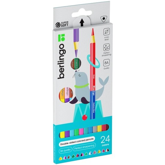 10 цен на Карандаши цветные Berlingo двусторонние "SuperSoft. Duo", 24цв, 12шт, трехгр., заточ., европ.