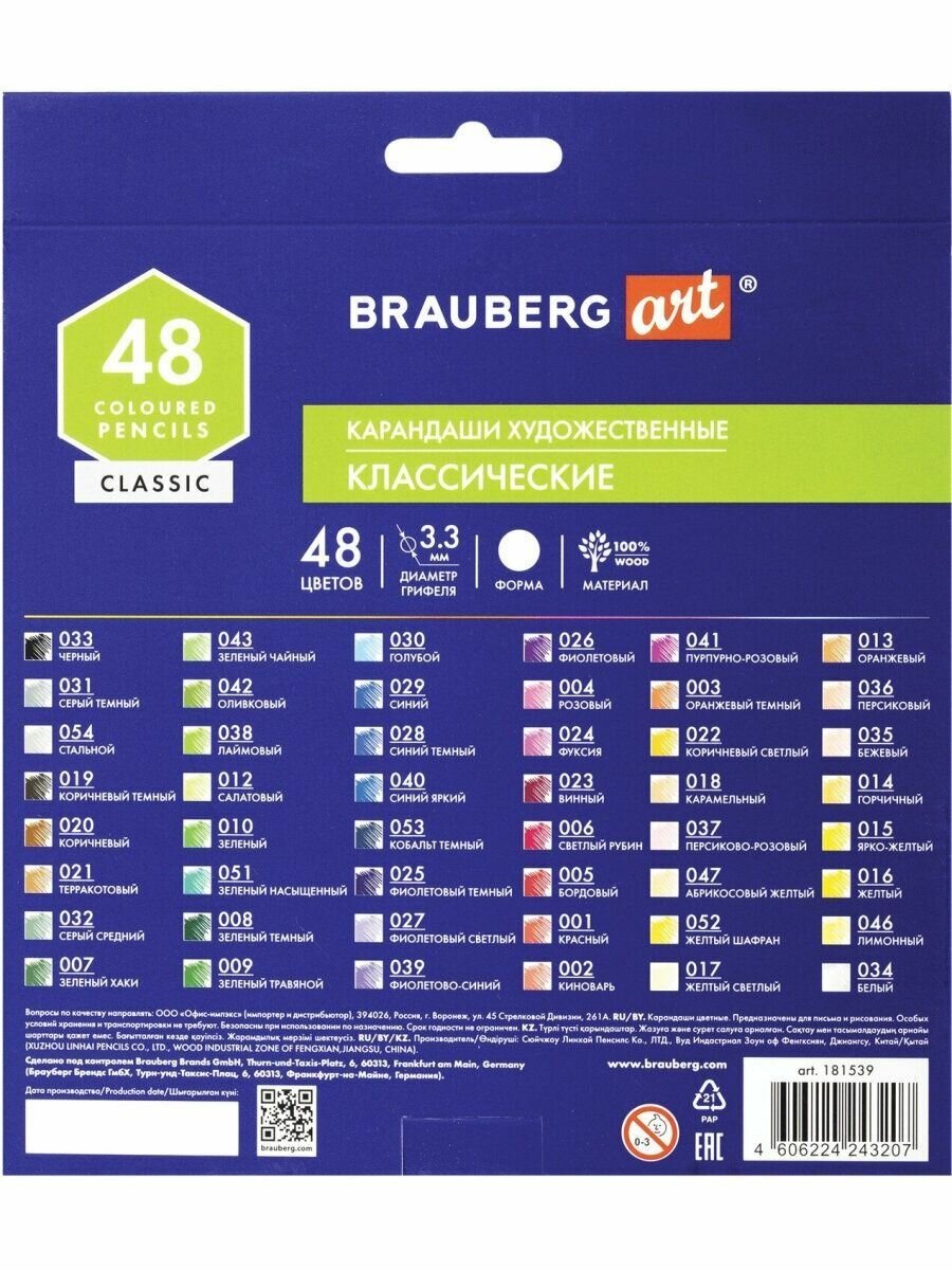Комплект 2 шт, Карандаши художественные цветные BRAUBERG ART CLASSIC, 48 цветов, мягкий грифель 3.3 мм, 181539 2 609 ₽