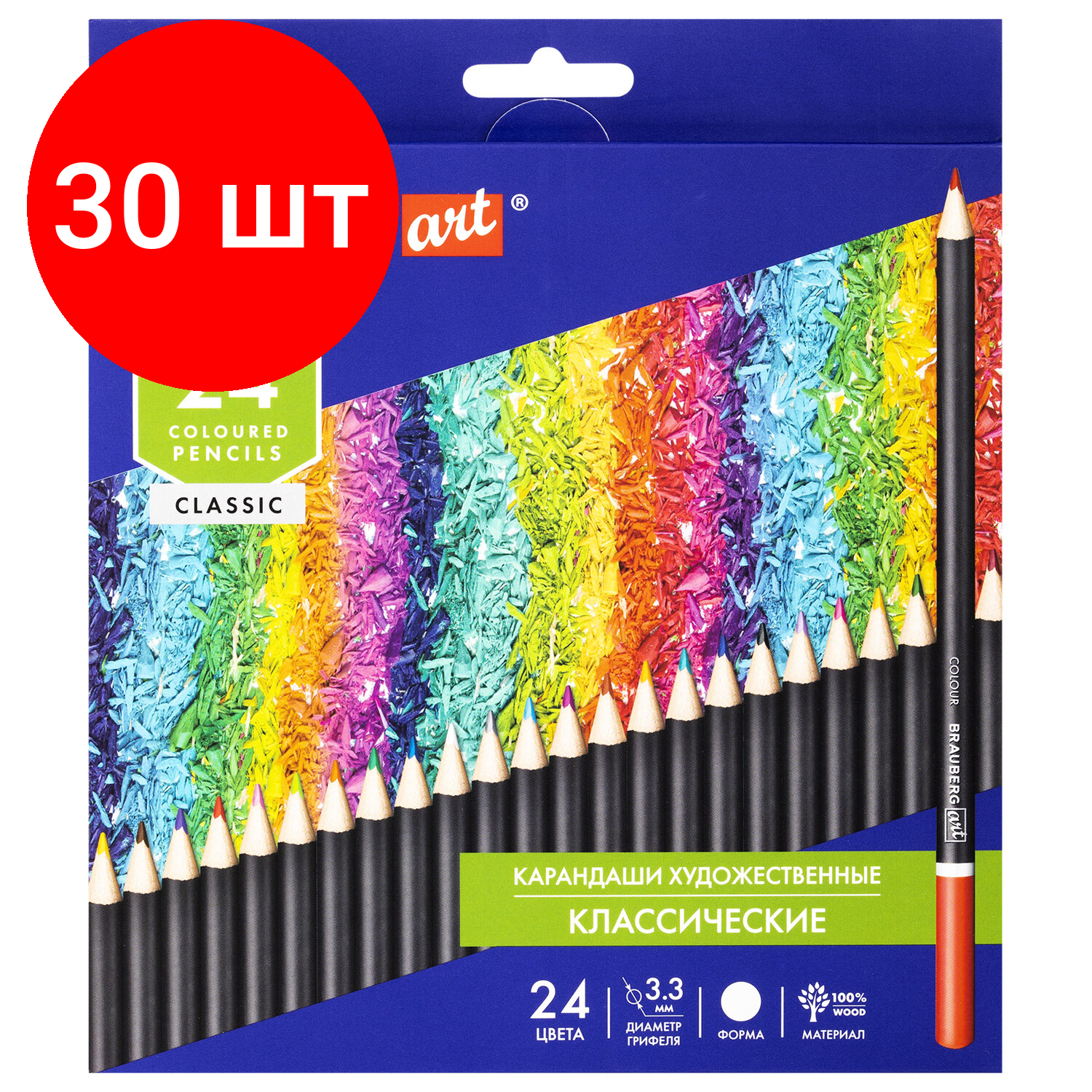 10 цен на Комплект 30 шт, Карандаши художественные цветные BRAUBERG ART CLASSIC, 24 цвета, мягкий грифель 3.3 мм, 181537