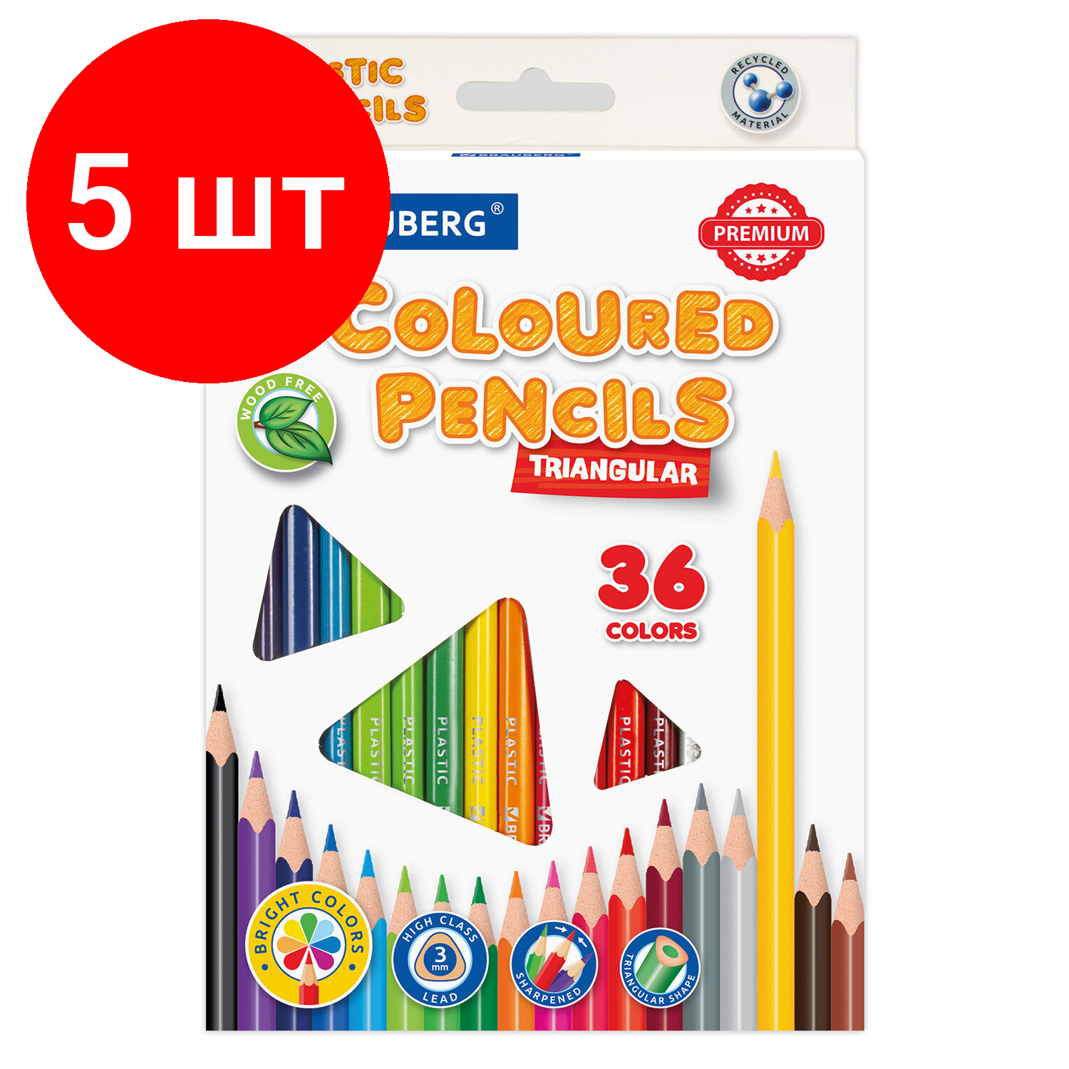 10 цен на Комплект 5 шт, Карандаши цветные пластиковые BRAUBERG PREMIUM, 36 цветов, трехгранные, грифель мягкий 3 мм, 181664