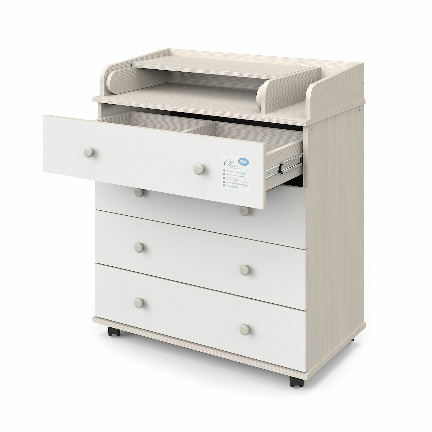 Комод пеленальный Атон Орион 804 (Oliver) ЛДСП с шариковыми направляющими, слоновая кость-белый